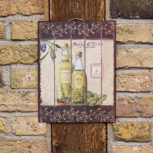 Nostalgisch decoratief bord, Italiaanse olijfolie, foto als muurschildering.