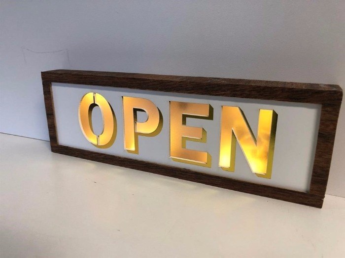 Leveringsomvang: Led reclame sign "Open" hout composiet, zonder batterijen.