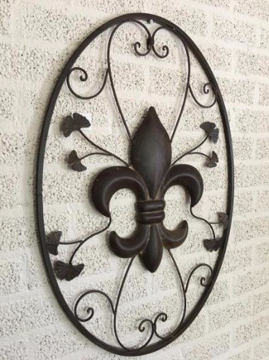 Mooi ontworpen metalen wandornament met de franse lelie centraal in het ornament.