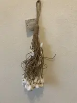 Gebonden met kunststof touw en een grote ophang lus