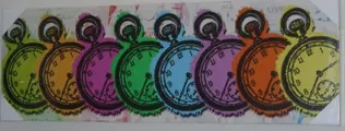 Leuke voorstelling op canvas doek met gekleurde zakhorloges.