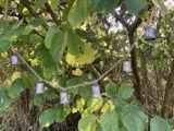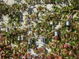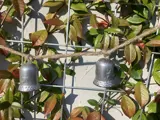 Aan de slinger hangen 6 zinken bellen met klepel met een hoogte van 5cm.