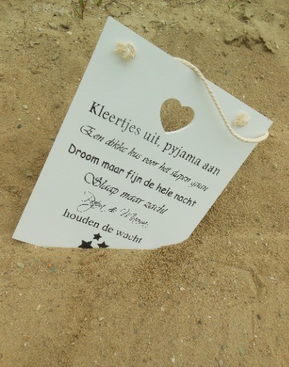 De foto van het tekstbord op het strand is ter illustratie, alle artikelen van Jutter24 zijn nieuw!