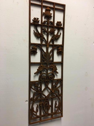 Wandrek gietijzer voorzien van een prachtig bloemmotief, in de kleur roestbruin. Mooi metalen rooster - Jugendstil, harmonieus gemaakt in filigraan ijzeren casting. Een decoratief raamrooster af een origineel vanaf het moment van de Jugendstil / Art Deco. Oorspronkelijk werden deze elementen vaak gevonden in de prestigieuze huizen van de onderscheiden stadsdistricten.