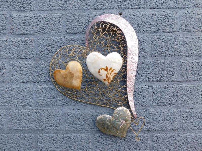Wandornament hart met hartjes - metaal met parelmoer