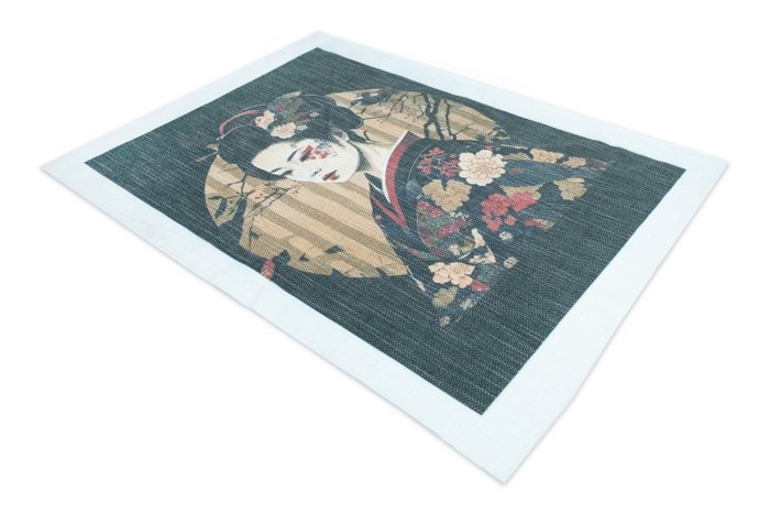 Fantastisch wandtapijt gedrukt op ruwe gemengde plx-stof in oosterse stijl met een vintage effect dankzij de voldoende dikke textuur die dit intrigerende effect weet te creëren.