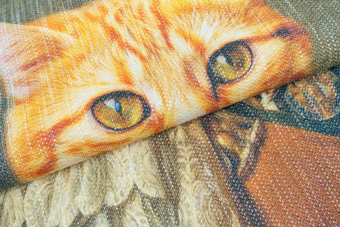 Fantastisch tapijt in renaissancestijl gedrukt op gemengde plx ruwe stof met een vintage effect dankzij de voldoende dikke inslag die erin slaagt dit intrigerende effect te creëren.