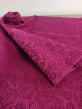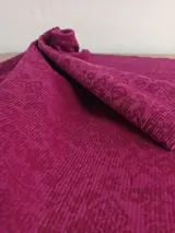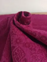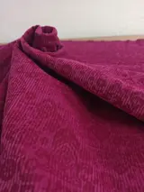 Fluwelen stof van puur katoen, geribbeld, in cyclaamkleur, met een bijzonder patroon met ton-sur-ton abstracte dessins. In een spel van licht, glanzend/mat. De live-kleur is vergelijkbaar met die van de foto's.