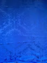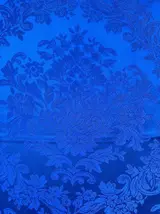 Luxe San Leucio damaststof in elektrisch blauwe kleur met rijke bloemendecoratie fijn afgewerkt.