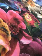 Heerlijke "Japan Style" bloemenstof met rijke veelkleurige roze en fuchsia bloemendecoratie.