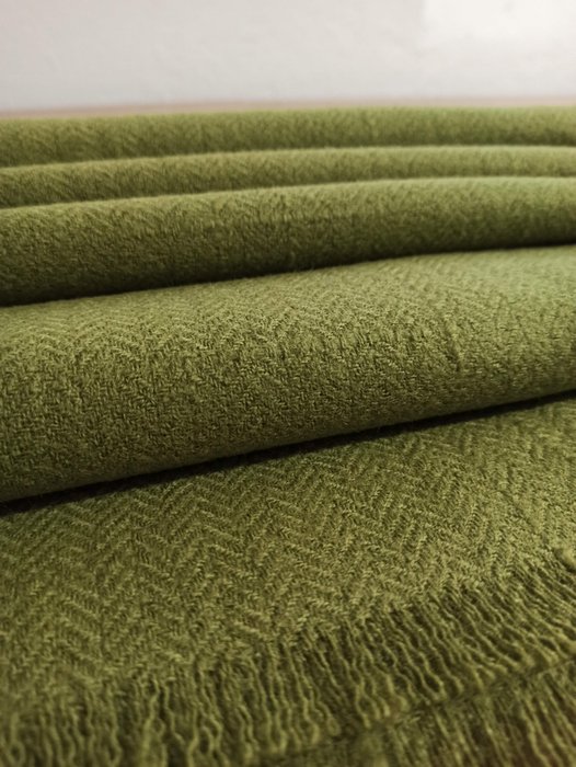 Mooie Schotse Tweed stof van zuivere wol, grasgroene kleur. De live kleuren lijken erg op die op de foto's.