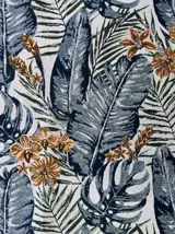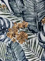 De decoratie is tropisch met bladgoud en bloemen, glamoureus en uiterst decoratief.