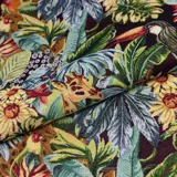 Fantastische zeer hoogwaardige, zeer zware vrolijke Gobelin stof met een botanisch fantasie patroon, op zwarte ondergrond met een licht vintage effect. De afbeeldingen die op de stof worden weergegeven, zoals u kunt zien, zijn zeer gedetailleerd.