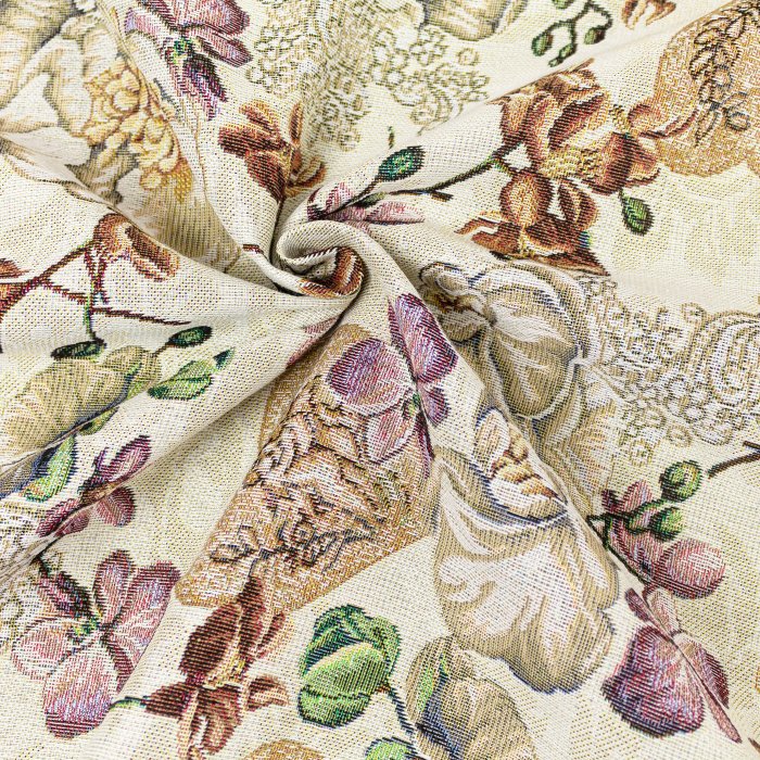 Schitterende gobelin-stof gemaakt met een jacquardweefgetouw met een complex en gedetailleerd weefsel, met een resistente en aanhoudende hand, leent het zich voor het creëren van kleurrijke en levendige meubelaccessoires zoals: lopers, kussens, tafellakens en bank- en fauteuilbekledingen, het wordt ook vooral gebruikt om tassen van te maken.
