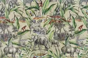 Fantastische Gobelin-stof, zeer hoge kwaliteit en zeer zwaar, met bospatroon op een beige achtergrond. De voorstellingen zijn zo goed gedefinieerd en rijk aan details dat ze bijna op een kunstwerk lijken.