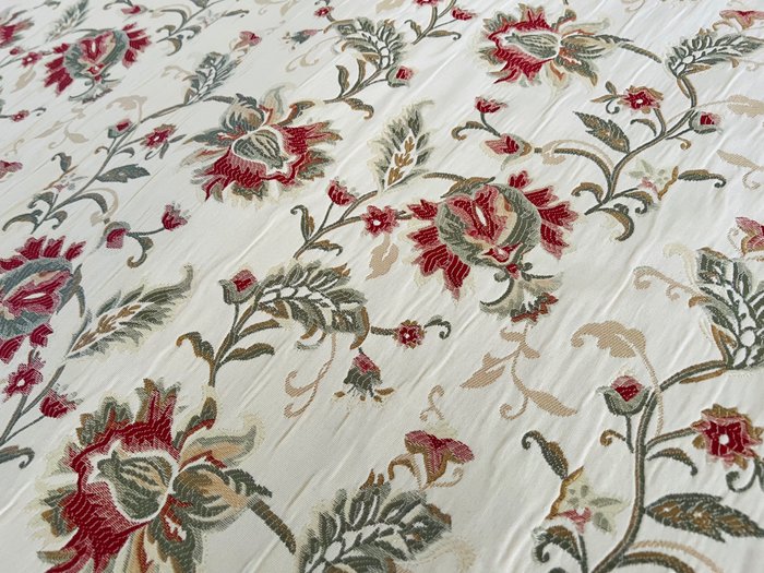 Prachtige en kostbare ivoor San Leucio damaststof met rijke veelkleurige bloemendecoratie in reliëfstof. De typisch Franse bloemendecoratie neemt de onmiskenbare stijl van het Lodewijk XVI-tijdperk over. Helder en met heldere en heldere kleuren. Een echte traktatie voor liefhebbers van luxe design.Ideaal voor het creëren van elk type interieurdecoratie in Franse rococostijl, het maken van stoffering en zware gordijnen.