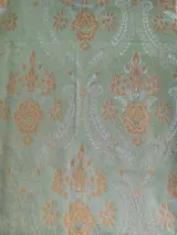 Elegante lampas-satijnen stof voor stoffering en wandtapijten, met heldere gouden decoraties, voor klassieke en prestigieuze zeer representatieve ruimtes.