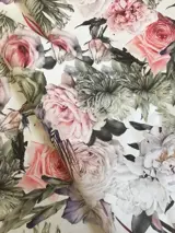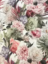 Verfijnde San Leucio-stof met Sanderson-patroon met klassieke bloemendecoratie met rozen in tropische chique stijl