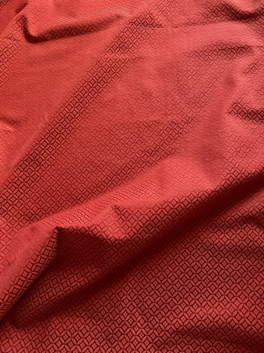 Pompeuze prinselijke stof verrijkt met een all-over rode decoratie met een elegant gebloemd diamantdessin Empire-stijl.