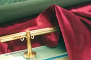6 m Fluwelen stof in intense wijnkleur voor stoffering op banken, fauteuils en poefs, of voor decoratieve ondoorzichtige gordijnen.