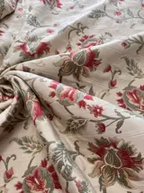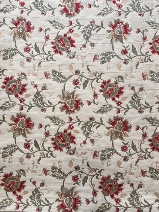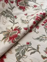 Lampasstof voor prestigieus meubilair, voornamelijk gebruikt in stoffering voor gordijnen, spreien, bekledingen. Mooie en zeer heldere lichtgouden kleur met delicate bloemendecoraties van verschillende soorten.