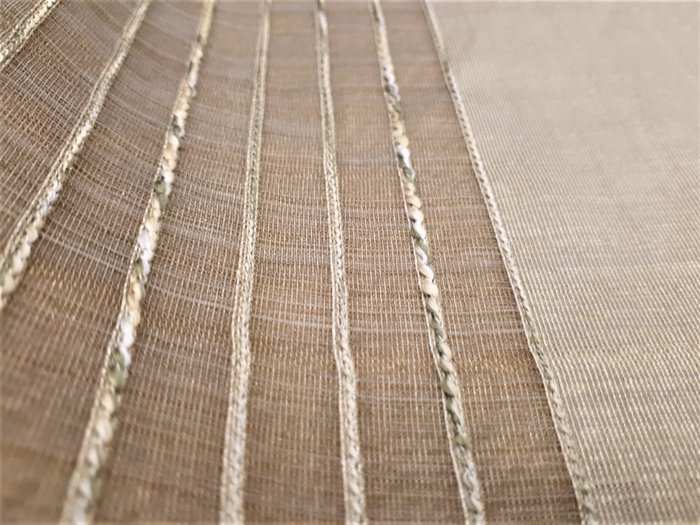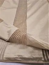 Enkele gordijnstof gesneden van meer dan 6 m; dubbele breedte made in Italy stof, met verticale strepen, afgewerkt met schietlood (essentieel om de stof te verzwaren en het gordijn de juiste vorm te geven).