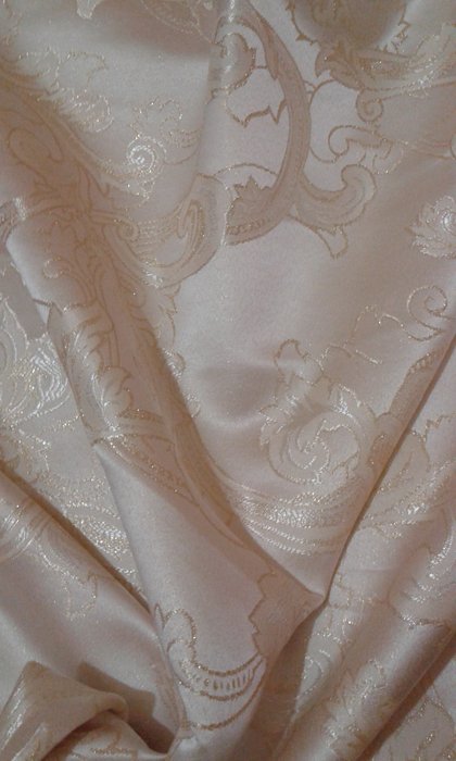 Crèmekleurige damaststof met gouden draadontwerpen die voor alles kunnen worden gebruikt, heel elegant. N1