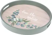 Rond dienblad van hout met opdruk Love the Nature.