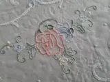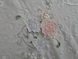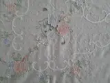 Elegant en groot 12-zits tafelkleed van fijn batistkatoen met handgemaakt opengewerkt en satijnsteekborduurwerk.