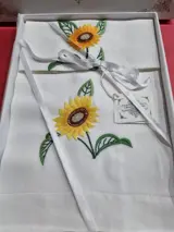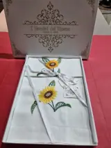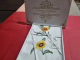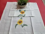 Spectaculaire 100% linnen handdoeken met handgeborduurde zonnebloemen in cordonsteek.