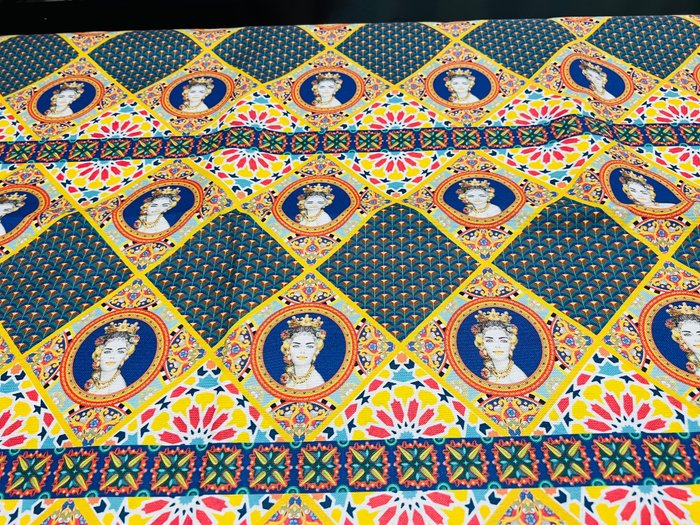 Mooie resistente Panama katoenen stof, digitale bedrukking met typisch Siciliaanse ontwerpen, heldere en heldere kleuren, ideaal voor inrichting en stoffering met stijl en elegantie elk type omgeving.