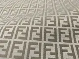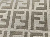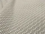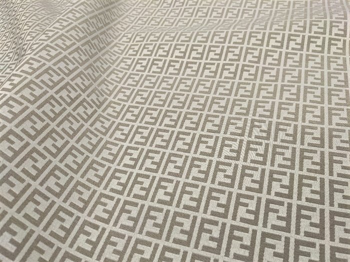 Spectaculaire Fendi Casa-snit: extra brede (h 340 cm) meubelstof van hoog gewicht (950 gram per meter) van sublieme kwaliteit en een fantastische garengeverfde monogramafwerking (het is geen bedrukte stof) in katoen en polyester op jacquardweefgetouw.