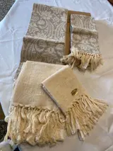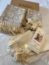 4 handdoeken van het beroemde Tessitura Artigianale Busatti opgericht in 1842 in Perugia. 2 hiervan zijn groot (cm.100 x cm. 55) en 2 klein, met franjes en geweven met oude weefgetouwen.