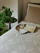 Een meesterwerk van artistiek vakmanschap handgemaakt met haakwerk.