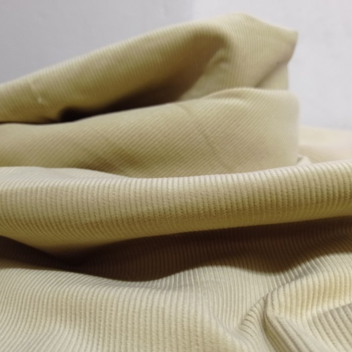 Geribbeld fluweel: het is een katoenen stof die wordt gekenmerkt door een oppervlak met lijnen in reliëf (vandaar de naam "geribbeld"). In dit geval dun corduroy.