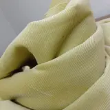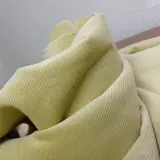 Van een mooie lichtgele kleur, bijna mosterdgeel, glad en glanzend zacht aanvoelend.