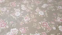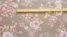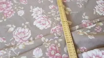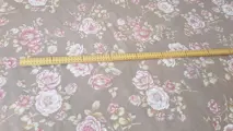 Katoenen stof, met rozen op een grijze achtergrond met afmetingen van 280 cm breed X 600 cm lang.