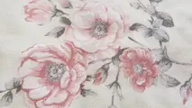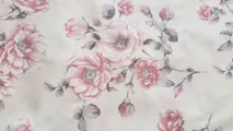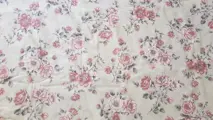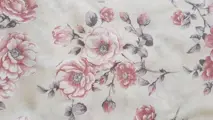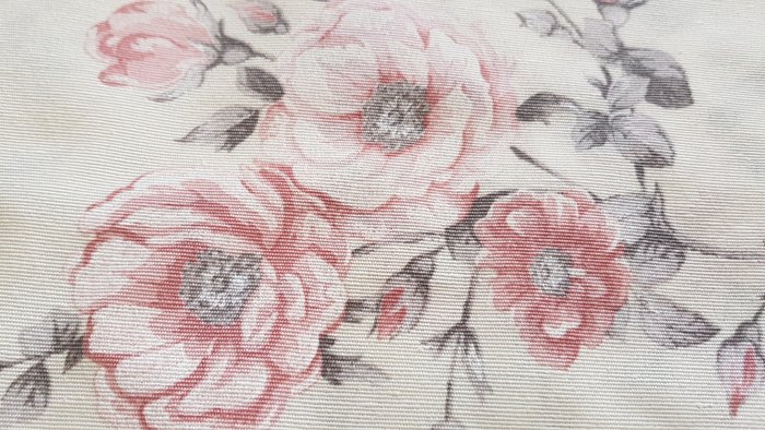 Katoenen stof, met rozen op een crème achtergrond met afmetingen van 280 cm breed X 600 cm lang.