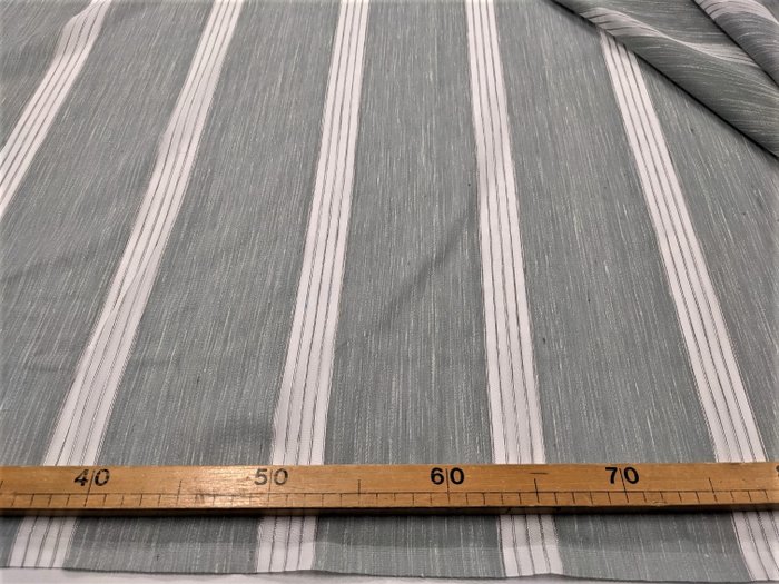 Hoogwaardige lichte organza gordijnstof in linnenmix met een streeppatroon, van de Miglioretti Manufacture of Chieri (TO), Italië.