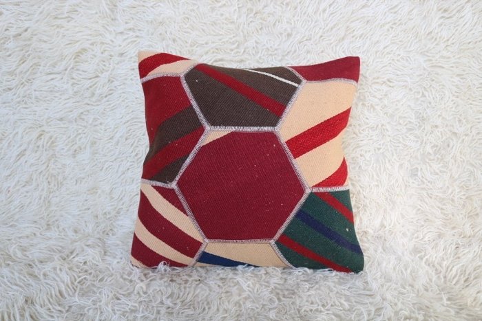 Kelim kant van het kussen gemaakt van katoen.