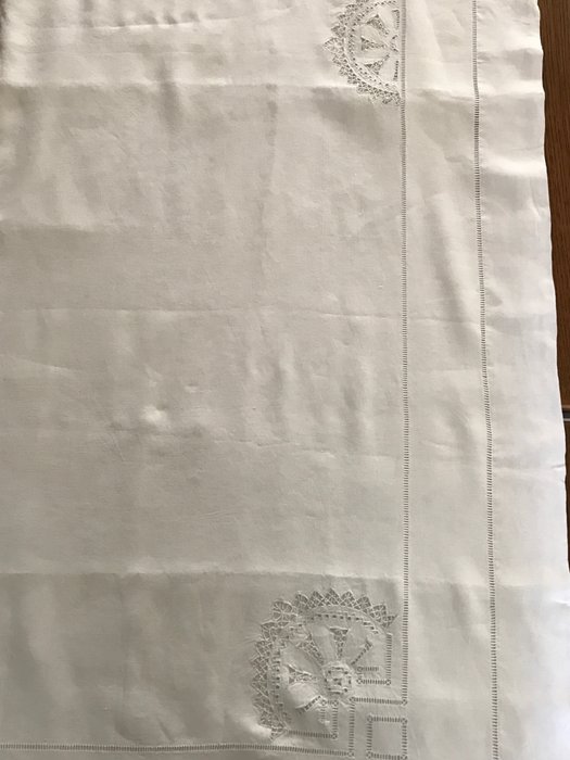 Laken linnen king size 236 cm / 328 cm zeer oud linnen laken uit de jaren 1910/1920 met de hand geborduurd in witte kleur dit laken heeft geen gaten of scheuren alleen minimale gebruikssporen wat normaal is voor zijn leeftijd
