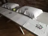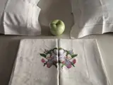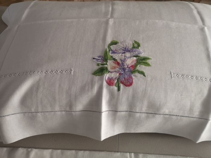 Spectaculair tweepersoonsbedlaken van puur linnen met handgeschilderd stikselborduurwerk