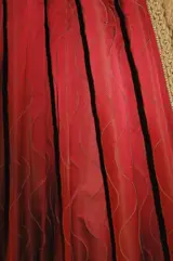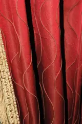 zachte moderne zijdekleur van een warme en verleidelijke rode variant geschikt voor het stofferen van stoelen, fauteuils en banken, perfect voor decoratieve gordijnen. Het golvende lijnontwerp kan zowel verticaal als horizontaal worden gebruikt.