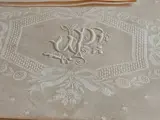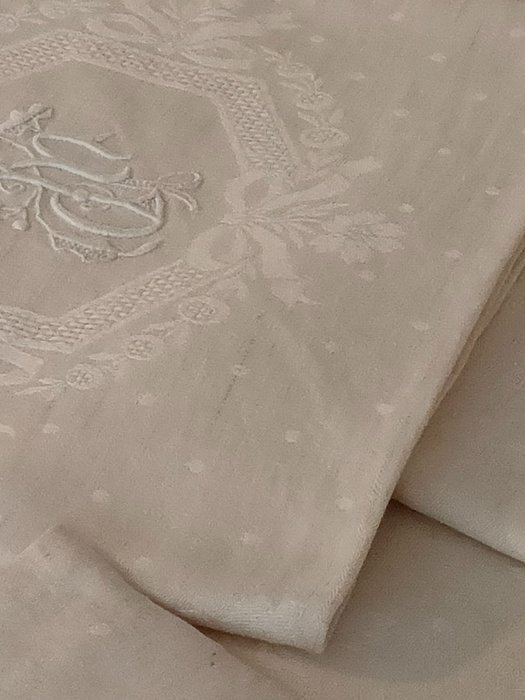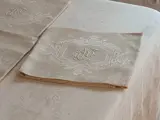 Monogram bevindt zich in het midden van het tafelkleed en elk servet.
