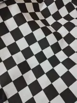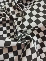 Mooie katoenen stof met zwart en wit ruitmotieven die gebruikt kan worden voor stoffering, gordijnen, stoelhoezen enz. Het zijn twee hele grote handdoeken van 250x140 cm, totale stof 500 cm lang bij 140 cm breed, echt heel mooi, nieuw, nooit gebruikt .