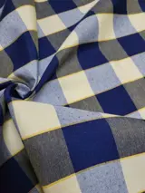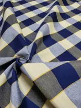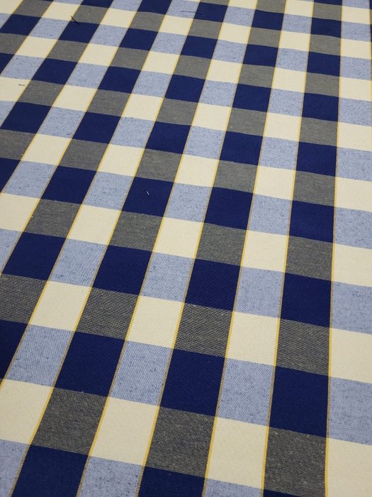 Prachtige Vintage Made in Italy stof gekenmerkt door een geruit patroon, met kleuren zoals blauw, grijs, indigo en geel, perfect in een gastvrije en praktische omgeving.De stof is ideaal voor het bekleden van het interieur van uw huis zoals u wilt, zoals gordijnen , tafelkleden, kussens, banken en nog veel meer.