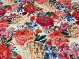 Mooie mix van Panama-linnen en katoen met digitale print met een exotisch thema.