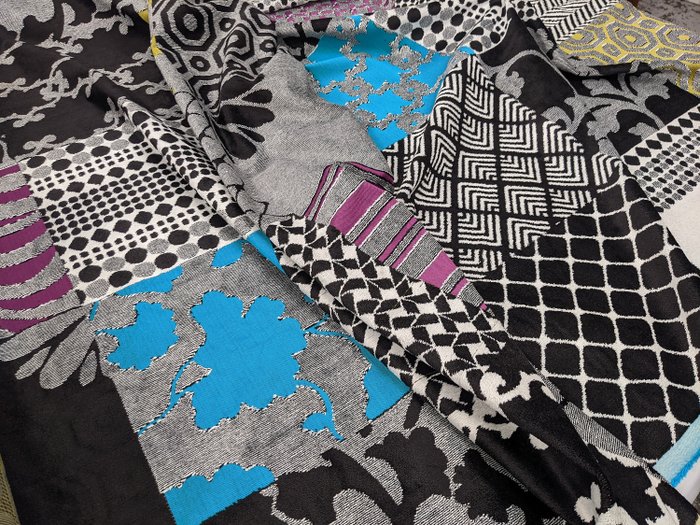 Spectaculair en uniek Snijden van meer dan 3 meter van de kleurtesten op de fantastische zware meubelzijdefluwelen van de Enzo degli Angiuoni-collecties: zijdezacht en met prachtige iriserende en bijtende kleuren.