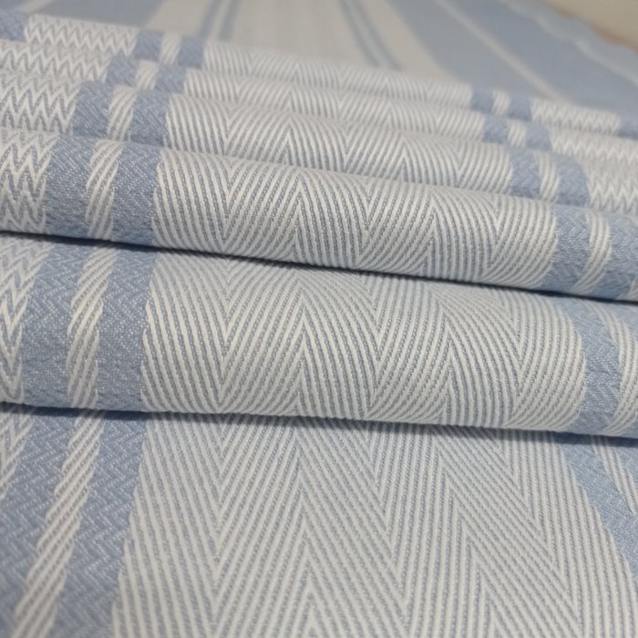 Elegante en verfijnde lichtblauwe en witte kleur met een reliëfpatroon dat gaat van honingraat tot strepen.