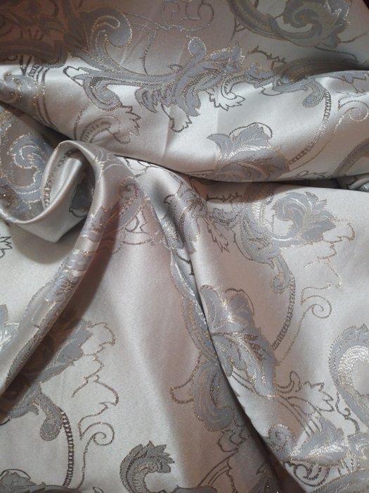 Mooie damast katoenen stof met bloemmotieven die gebruikt kan worden voor stoffering, gordijnen, stoelhoezen enz. Dit zijn twee hele grote handdoeken van 250x145 cm, totale stof 500 cm lang bij 145 cm breed, echt heel mooi, nieuw, nooit gebruikt.
